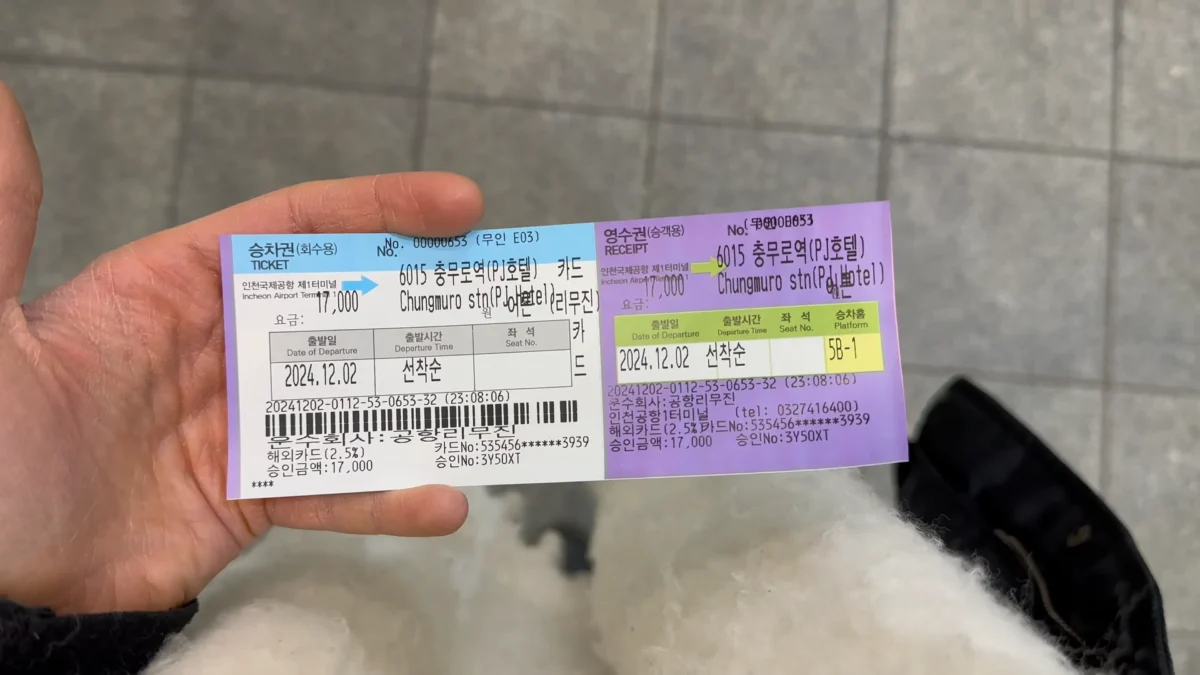 Seoul’s winter is much colder than many expect, so carrying a “Hot Pack” (disposable hand warmer) is an absolute necessity. You can also find warm canned drinks or honey water at convenience stores (CU, GS25) to help thaw your hands. For transport, the Airport Limousine Bus is the most comfortable way to reach the city center, and it accepts both cash and T-money cards (approx. 17,000 KRW).